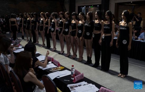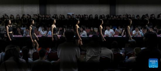BEIJING, 7 agosto, 2025 (Xinhua) -- Personas participan en una audición de modelos para la próxima Semana de la Moda de China 2025, en Beijing, capital de China, el 7 de agosto de 2025. El jueves comenzó aquí una audición de modelos para la próxima Semana de la Moda de China 2025, que se celebrará en Beijing del 5 al 14 de septiembre. (Xinhua/Cai Yang)