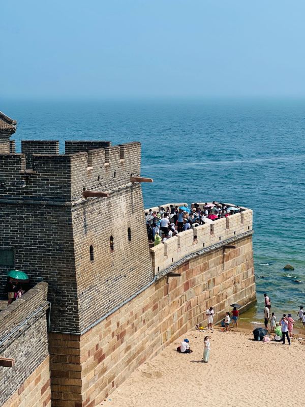Impresionantes vistas de la Gran Muralla entrando en el mar, en una playa turística de Qinhuangdao, provincia de Hebei, a 14 de agosto de 2025. Foto por Álvaro Lago, Diario del Pueblo digital.