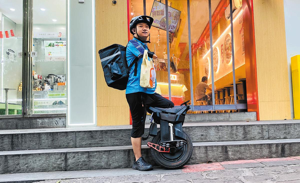 "El monociclo satisface mis necesidades", asegura Li. "Mi récord hasta ahora es entregar cinco pedidos en un solo viaje".