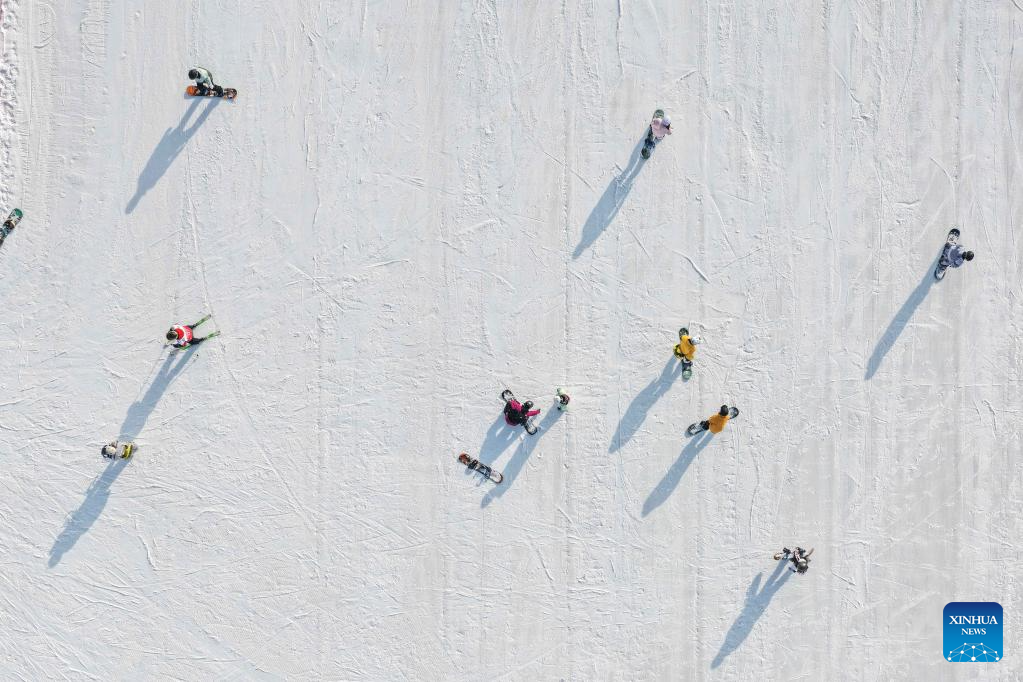 HOHHOT, 12 enero, 2026 (Xinhua) -- Imagen tomada con un dron el 14 de diciembre de 2025 de personas esquiando en una estación de esquí, en Hohhot, en la región autónoma de Mongolia Interior, en el norte de China. Hohhot ha puesto en marcha más de 300 programas de diversión de invierno desde diciembre de 2025, incluyendo deportes de hielo y nieve, experiencias culturales y consumo de moda para impulsar la economía local. (Xinhua/Li Zhipeng)