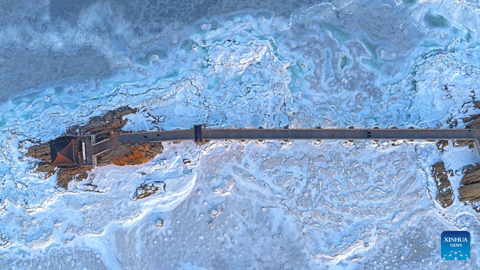 HULUDAO, 21 enero, 2026 (Xinhua) -- Imagen tomada con un dron el 21 de enero de 2026 de una vista sobre el hielo marino, en Xingcheng de la ciudad de Huludao, en la provincia de Liaoning, en el noreste de China. (Xinhua/Tian Jia)