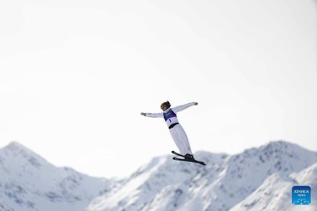 LIVIGNO, 18 febrero, 2026 (Xinhua) -- Xu Mengtao, de China, compite durante la clasificación 1 de aerials femenino de esquí acrobático en los Juegos Olímpicos de Invierno Milán-Cortina 2026, en Livigno, Italia, el 18 de febrero de 2026. (Xinhua/Wu Huiwo)