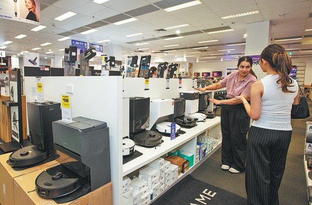 Una dependienta ofrece información sobre aspiradoras robot chinas a una cliente en una tienda de electrodomésticos en Sídney, Australia, el 13 de octubre. MA PING/XINHUA
