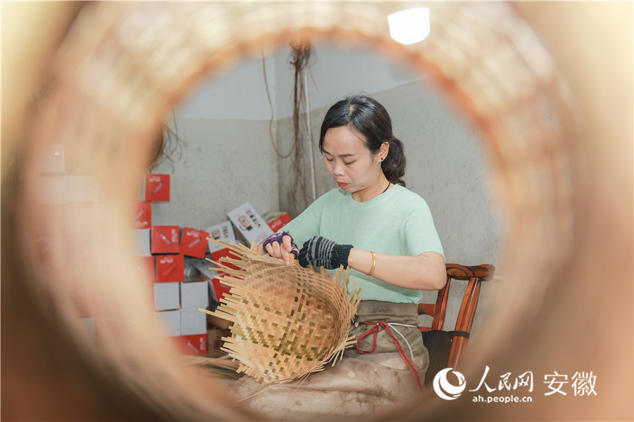 Una artesana de tejido de bambú elabora productos a mano. (Foto: Diario del Pueblo Digital/ Zhang Jun)