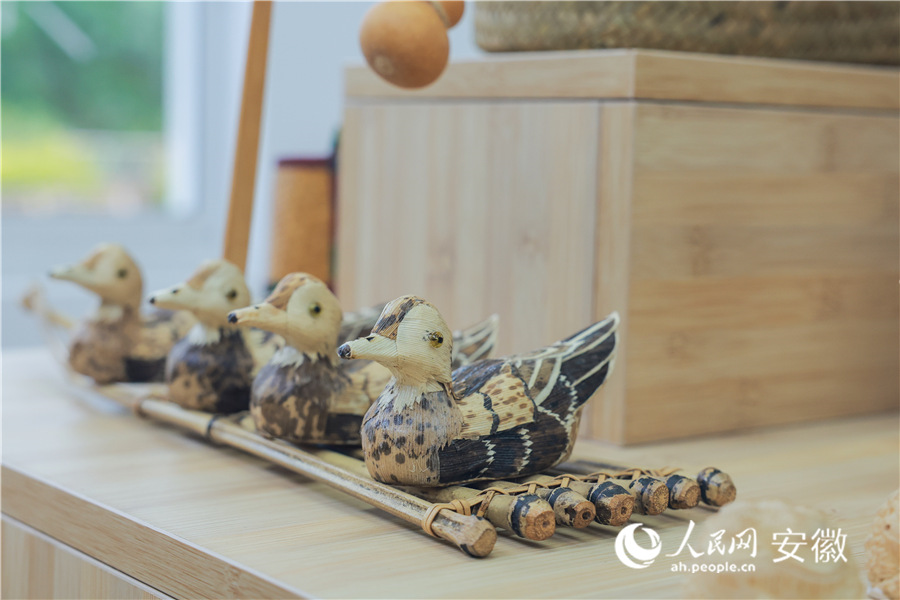 Adornos de animales realistas hechos de vainas de brotes de bambú. (Foto: Diario del Pueblo Digital/ Zhang Jun)