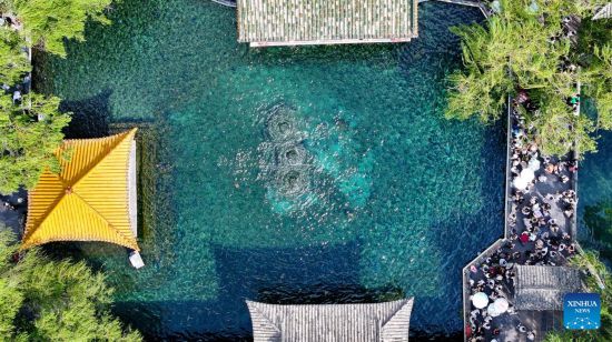 JINAN, 22 agosto, 2025 (Xinhua) -- Vista aérea tomada con un dron el 22 de agosto de 2025 del Manantial Baotu, en Jinan, en la provincia de Shandong, en el este de China. (Xinhua/Xu Suhui)