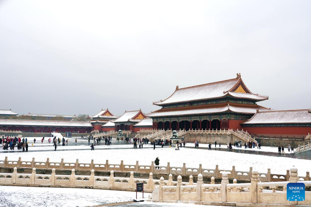 Imagen del 5 de marzo de 2026 de una vista del Museo del Palacio luego de una nevada, en Beijing, capital de China. Beijing fue testigo de una nevada primaveral del miércoles al jueves. (Xinhua/Xie Han)